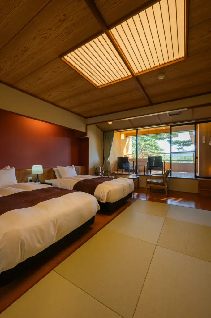 三陸復興国立公園内という宮古屈指のロケーションを誇る浄土ヶ浜パークホテル。水平線の向こうから昇ってくる朝日はもちろんのこと、夜の海原に浮かぶ漁火といった三陸らしい海の景色を楽しめるのもこの立地ならでは。ゆったりとした時間のなかで味わう極上の風景は何よりの贅沢だ。